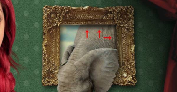 Setelah dilakukan retouching, ekstrak Gajah menggunakan Pen Tool dan meletakkannya di atas Frame Layer. Tempatkan persis seperti yang Anda lihat dalam gambar di bawah ini, klik pada thumbnail Frame lapisan untuk memuat seleksi, dan menggunakan Layer Mask untuk menyingkirkan kelebihan daerah kita tidak perlu.